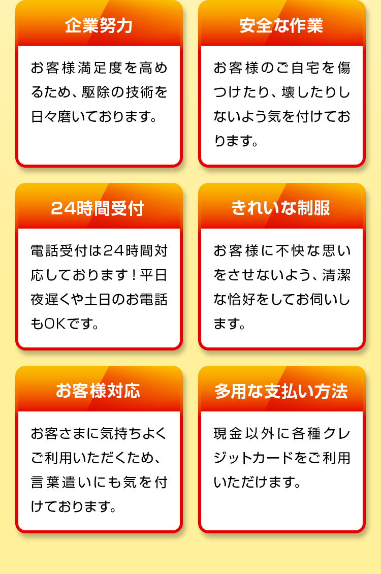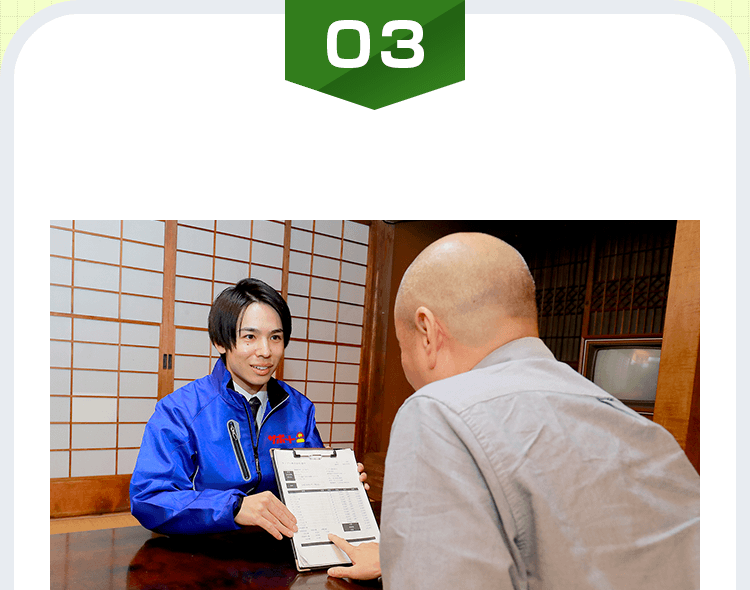 お客様満足度のため、最速の日程でお伺いします。「いつ来てくれるか分からない...」とヤキモキすることはありません。